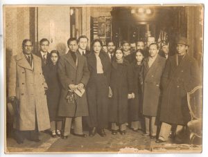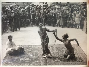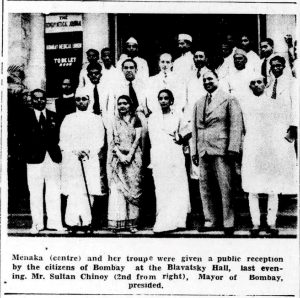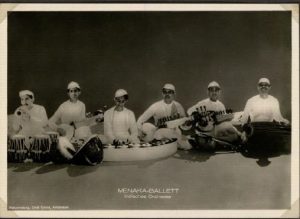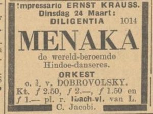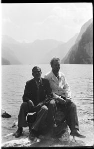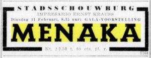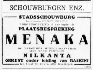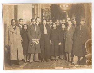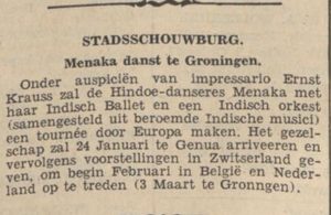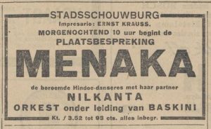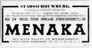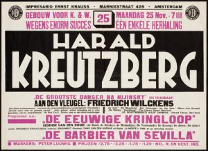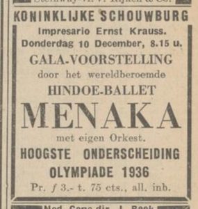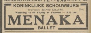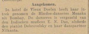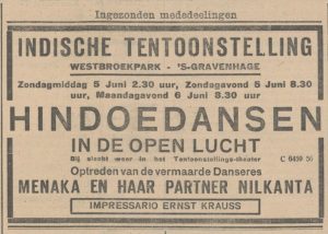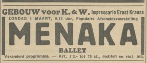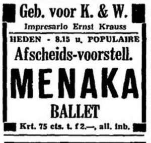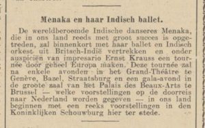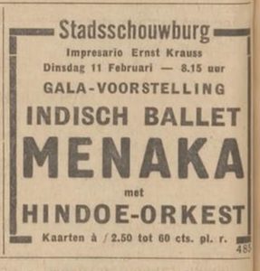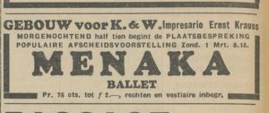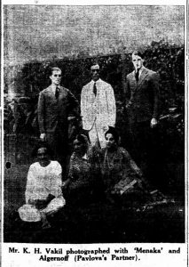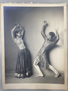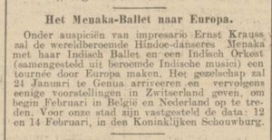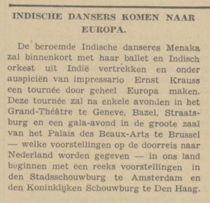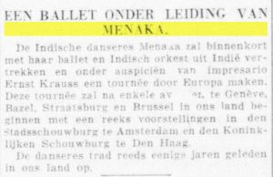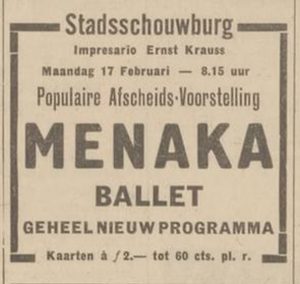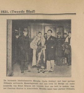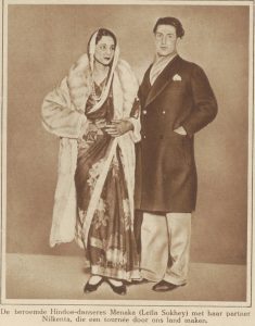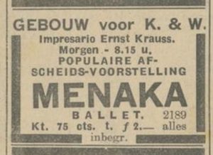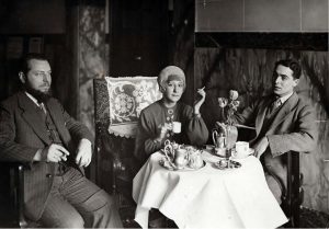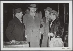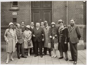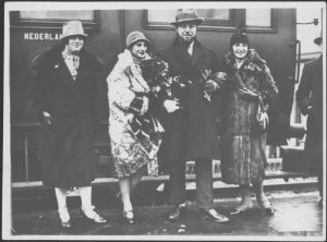 Impressario Ernst Krauss met de befaamde danseres Thamar Karsavina en partner Keith Lester in het Victoria Hotel, Amsterdam. Nederland, 1929